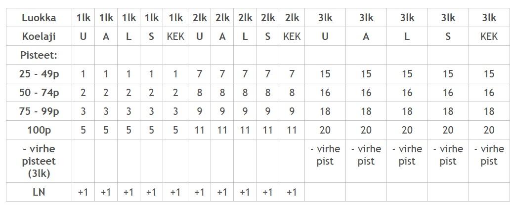 Lisäpisteet huomioidaan ainoastaan, mikäli ko. kokeen tulos on mukana peruspistelaskennassa.
